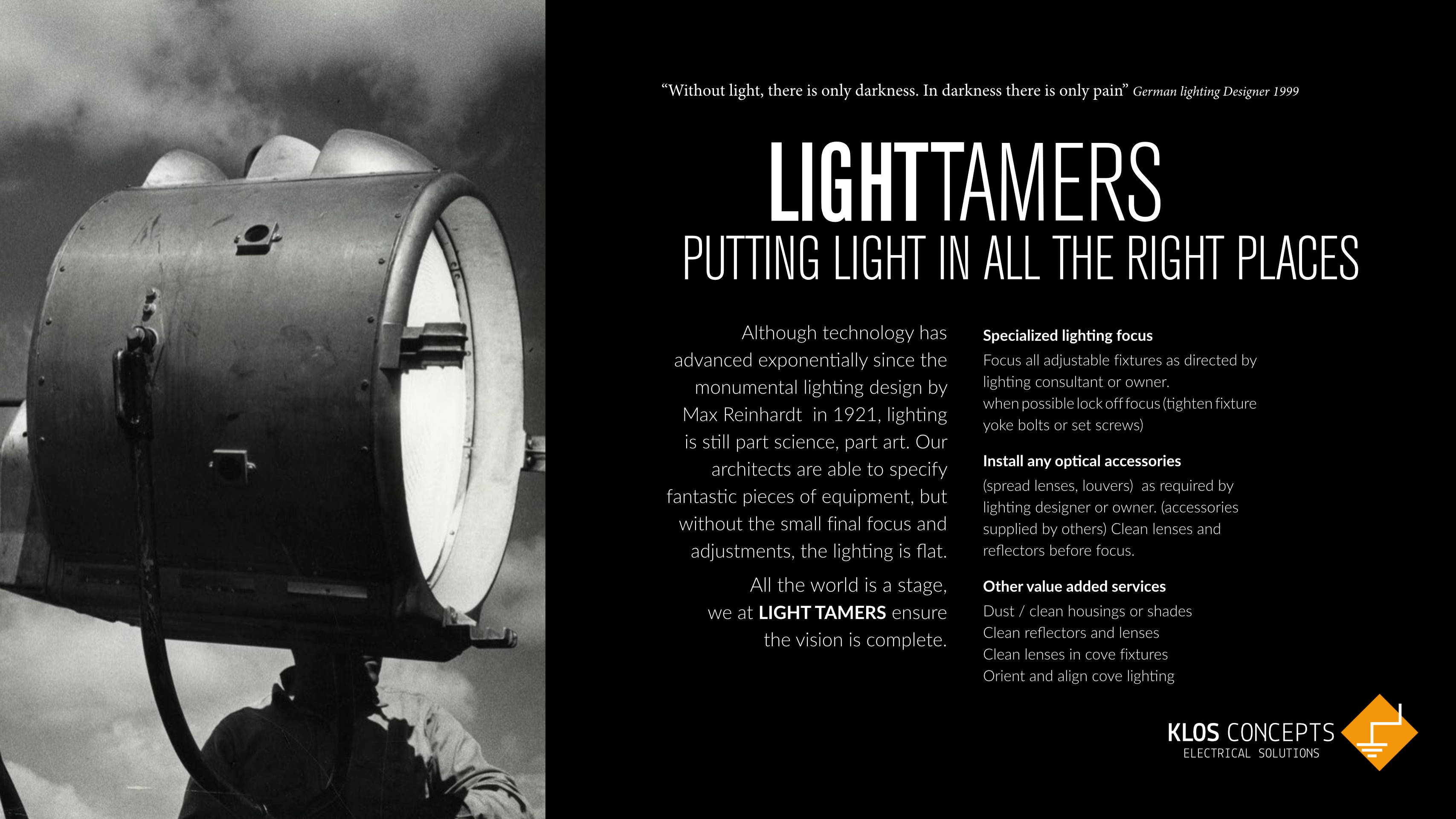 a Klos Concepts Service info@lighttamers.com
